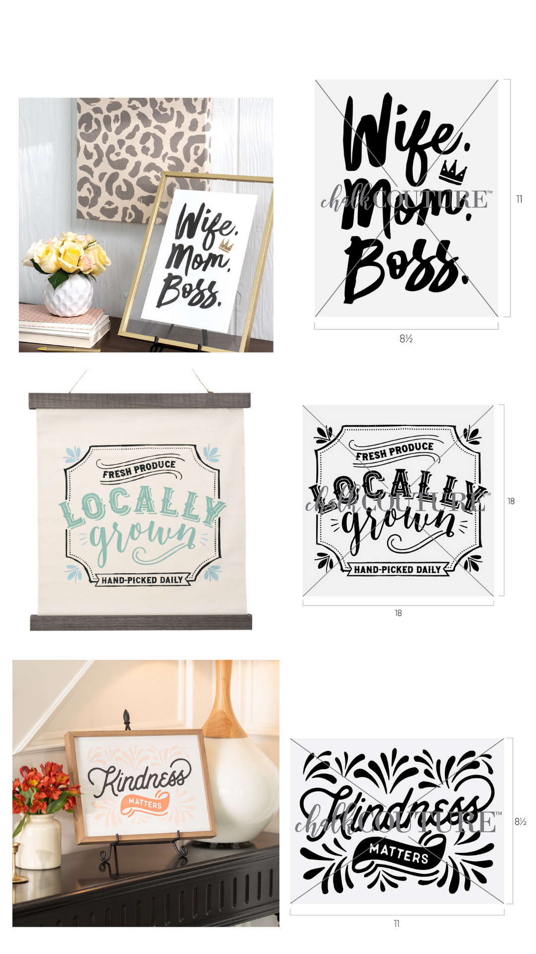 Worry Less, Show Up, Love Brings Us Home, Wife Mom Boss, Fresh Produce Locally Grown, Kindness Matters